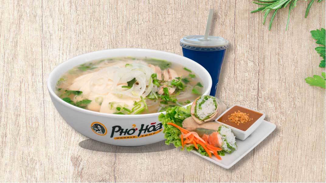 Select a JE Pho / Popcorn Chicken / Banh Mi with any roll and soft drink