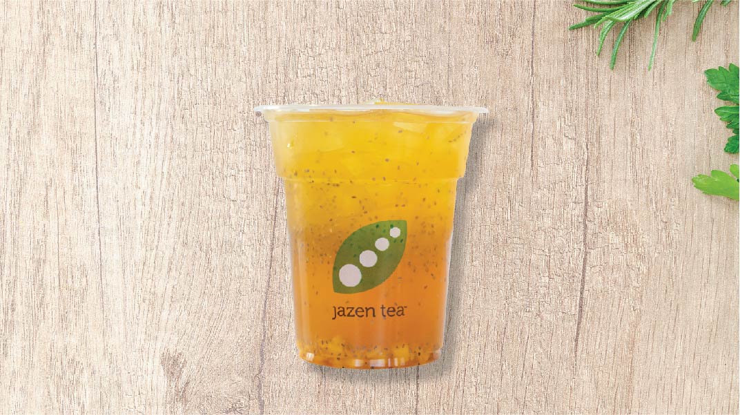 Calamansi mango tea + chia seeds & mango fruit bits