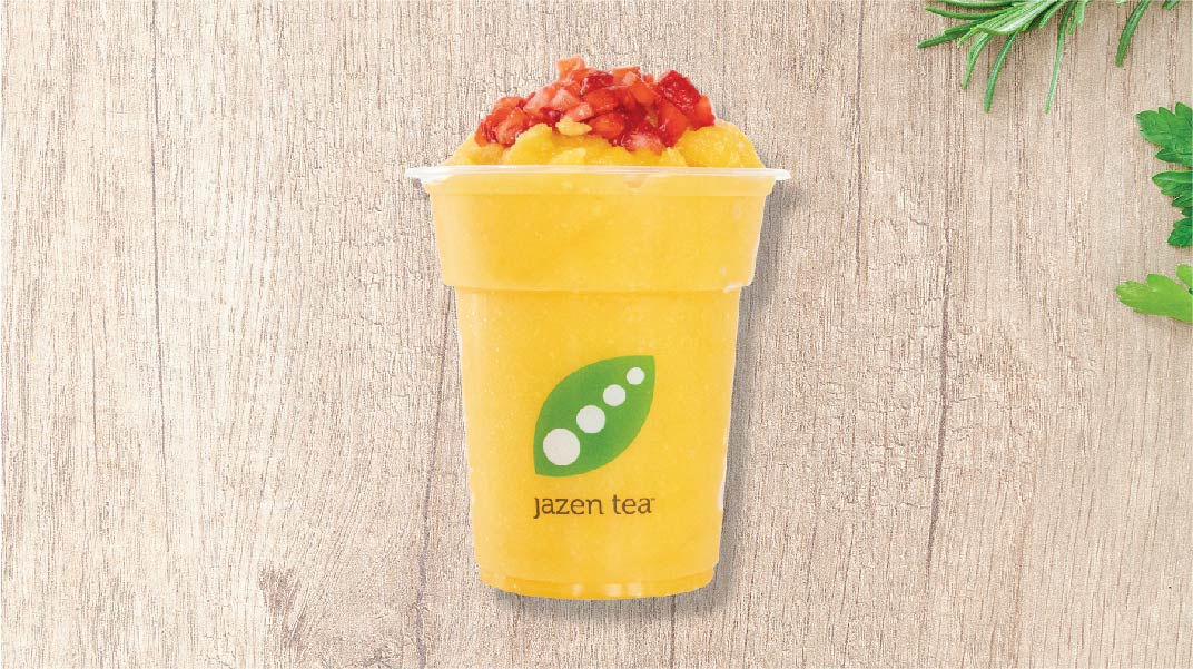 Blended fresh mango + strawberry fruit bits