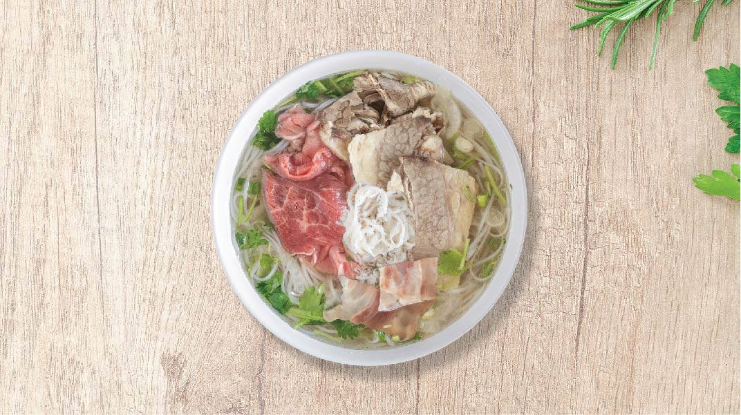 Known as “Đặc Biệt” – Tenderloin steak, tenderized brisket, tendon & tripe – “Most popular!”