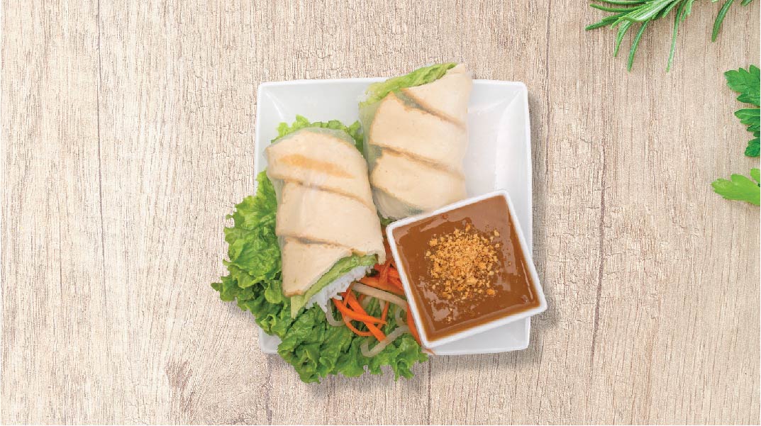 Tofu & vegetables wrapped in rice paper served with peanut sauce